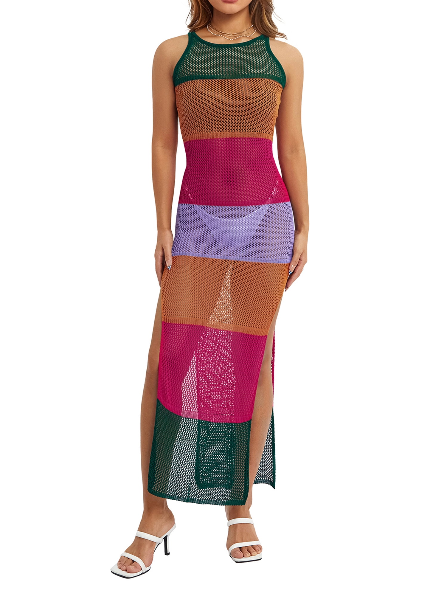 Women Hollow Out Knitted Dress Multicolor Swimsuit Cover Ups Sleeveless Long Dress Beach Party Wear Walmart Com